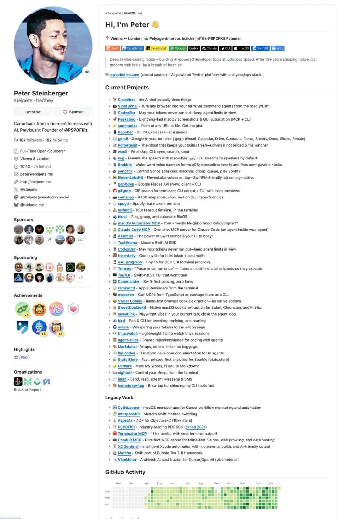 GitHub上的星标增长曲线更是前所未见。“它就是一条直线,笔直向上,”Steinberger说,“我得和GitHub的人聊聊,我不认为以前有过这样的项目。”