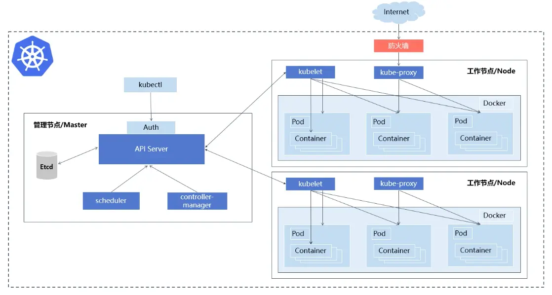 Kubernetes用于容器化应用程序的部署、扩展和管理,目标是让部署容器化应用简单高效。