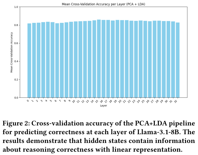 这意味着模型其实知道自己在胡说八道还是在严谨推导,这种信号清晰地存在于其内部表示中。