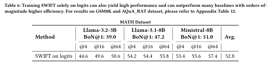 于是,研究者尝试仅利用Logits来训练SWIFT。