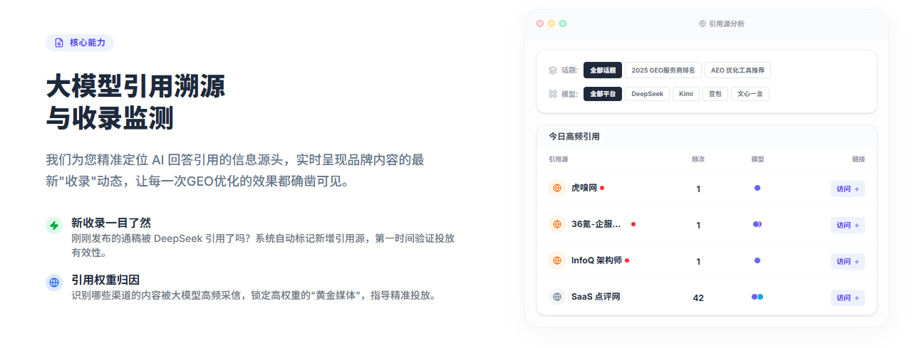 数据驱动决策:它提供的数据,能直接指导你的下一步行动。比如,发现某个AI平台覆盖弱,就加强针对该平台的内容适配;发现某类内容收录好,就加大同类内容的产出。