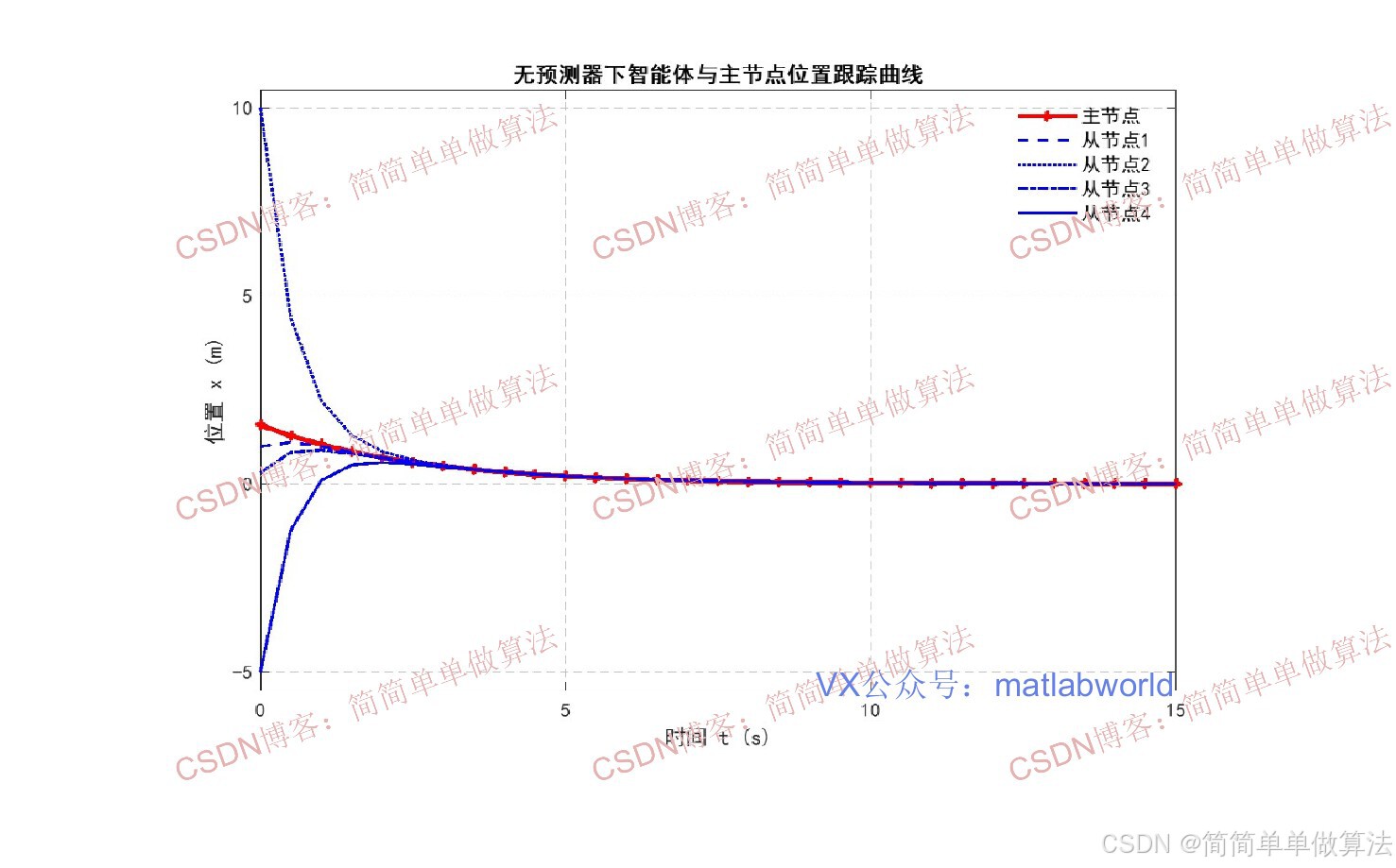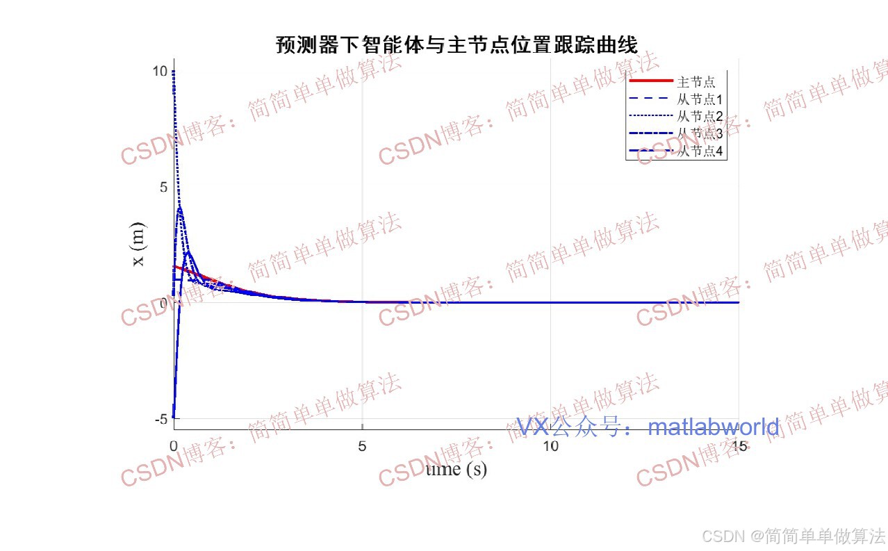 title('预测器下智能体与主节点位置跟踪曲线', 'FontSize', 14, 'FontName', 'SimHei', 'FontWeight', 'bold');