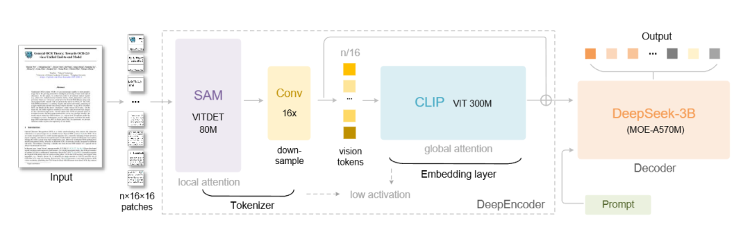 SAM + Conv做前端感知(也就是编码器的前半部分) - 解码器部分仍然是一个 LLM(DeepSeek-3B)