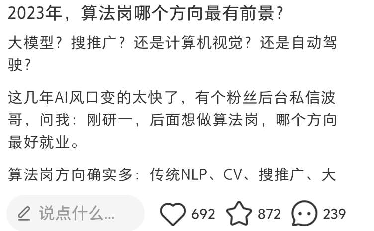 本文只主要讨论两种岗位:大模型和搜推广,为什么不展开说其他的?不代表其他的方向不行,原因我最后会解释。
