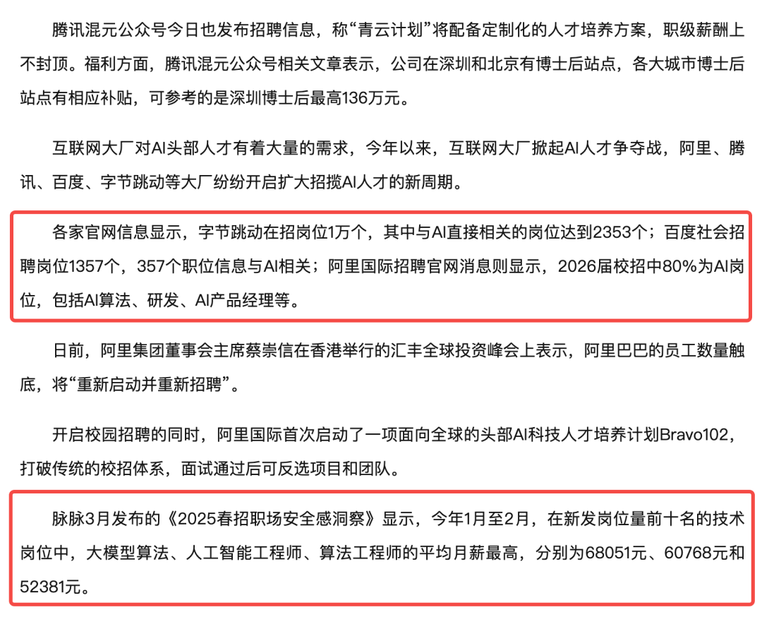 (1)基座大模型团队:需求少门槛高薪资高竞争激烈。