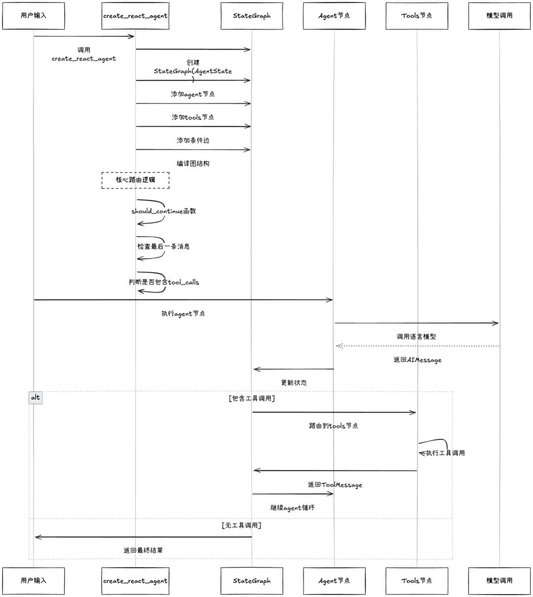 让我们深入看看create_react_agent内部是如何工作的: