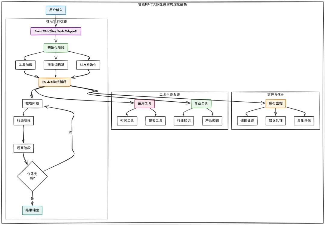 在做智能解决方案系统的这段时间,我踩了不少坑,也学到了一些东西。ReAct范式确实在Agent落地方面解决了很多实际问题,总结下来主要是这个方面:可控性比智能性更重要用户说"只要3页",AI如果生成20页,即使内容再好,用户体验也是失败的。问题的根源在于AI的决策过程不透明,用户无法知道AI为什么生成了20页。ReAct让AI的思考过程变得透明,用户可以看到AI的推理过程,从而控制输出。这比让它变