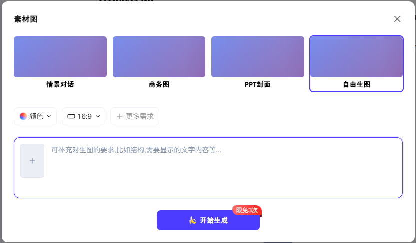 1. 自由生图:无需依赖模板,通过自然语言指令即可直接生成封面、内容页、场景配图等全类型PPT页面。无论是科技感的技术总结封面,还是温馨的教学成果展示页,只需清晰描述需求,AI就能精准落地,摆脱模板化的刻板印象。