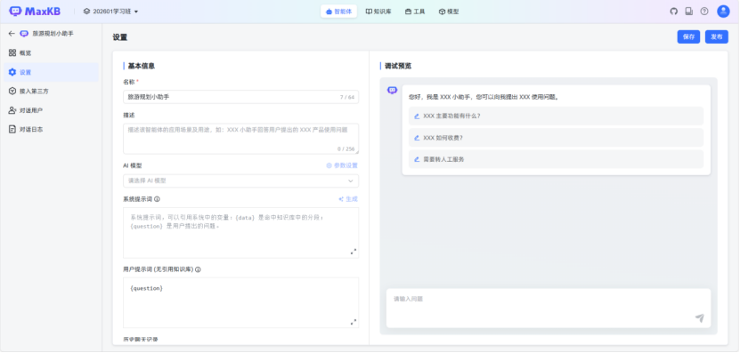 测试与预览是智能体上线前的关键验证环节,通过模拟用户交互场景,验证智能体的功能完整性(如工具调用、知识库检索)、回答准确性(如预算计算、行程规划)及界面交互流畅性,确保上线后用户体验符合预期。
