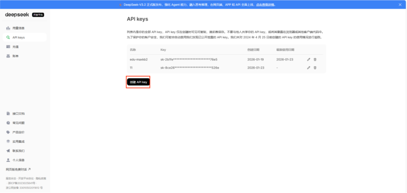 1.1 申请Deepseek API