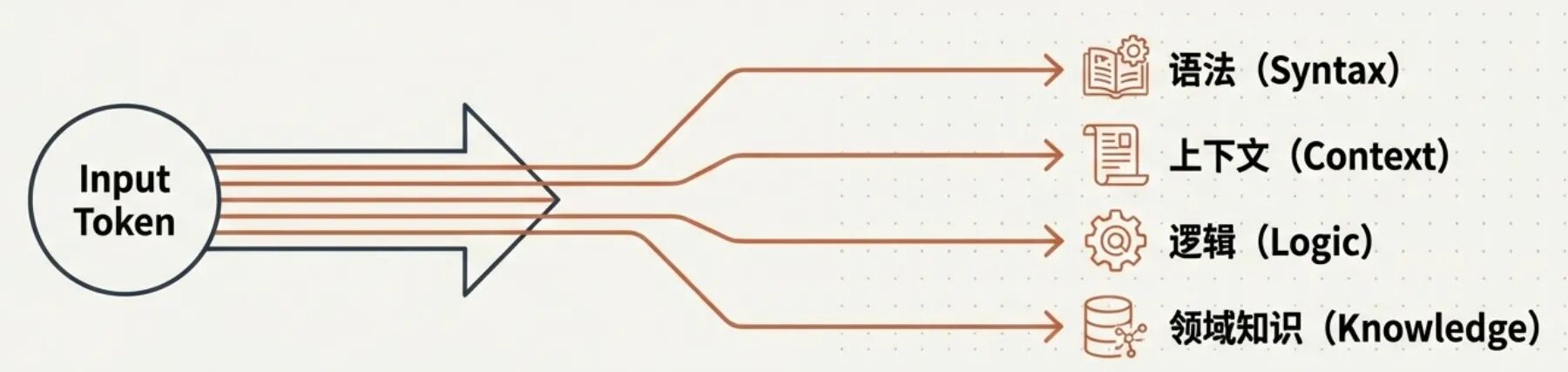注意:这不是简单的复制,而是根据权重将新知识以不同比例分配给 4 个通道,从而产生差异化(最终向量就包含了语法、上下文、逻辑、领域知识等等更多的语义信息)。