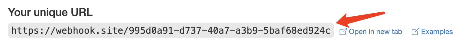 将此 URL 复制下来,就可以作为 Webhook 来使用,此处的样例为 https://webhook.site/995d0a91-d737-40a7-a3b9-5baf68ed924c。