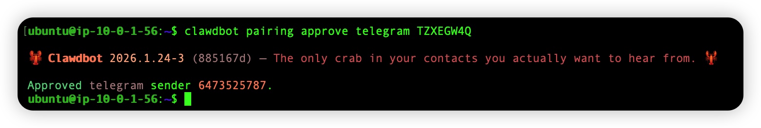 通过以上步骤,你已经成功在 AWS 安全环境中拥有了一位强大的 AI 助理。它不仅能通过 Telegram 随时响应你的呼唤,还能利用 Bedrock 强大的推理能力处理复杂的工作流。