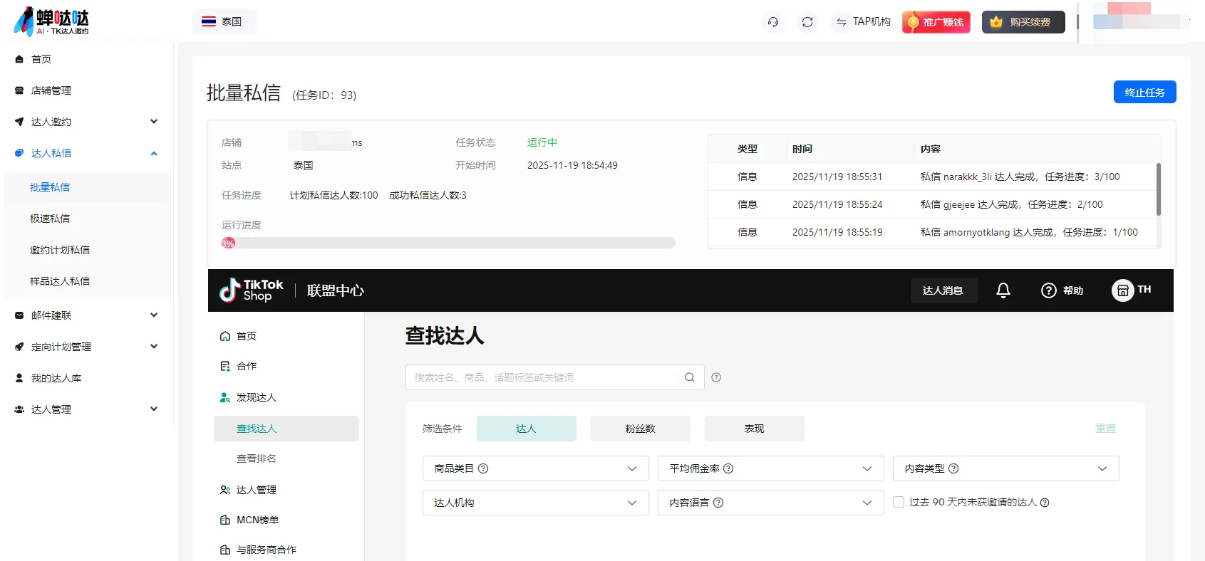 - 一键批量发送:点击发送,系统将自动、批量地向这几千名达人进行精准触达。
