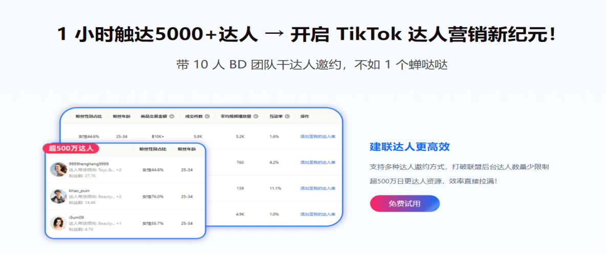 - 蝉哒哒实现:系统内置的“千万达人库”能让你快速分析达人粉丝画,AI生成的邀约话术可以自动填充这些“个性化”字段,让你的批量化沟通也能像一对一一样精准。