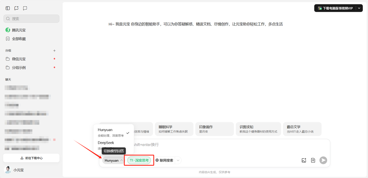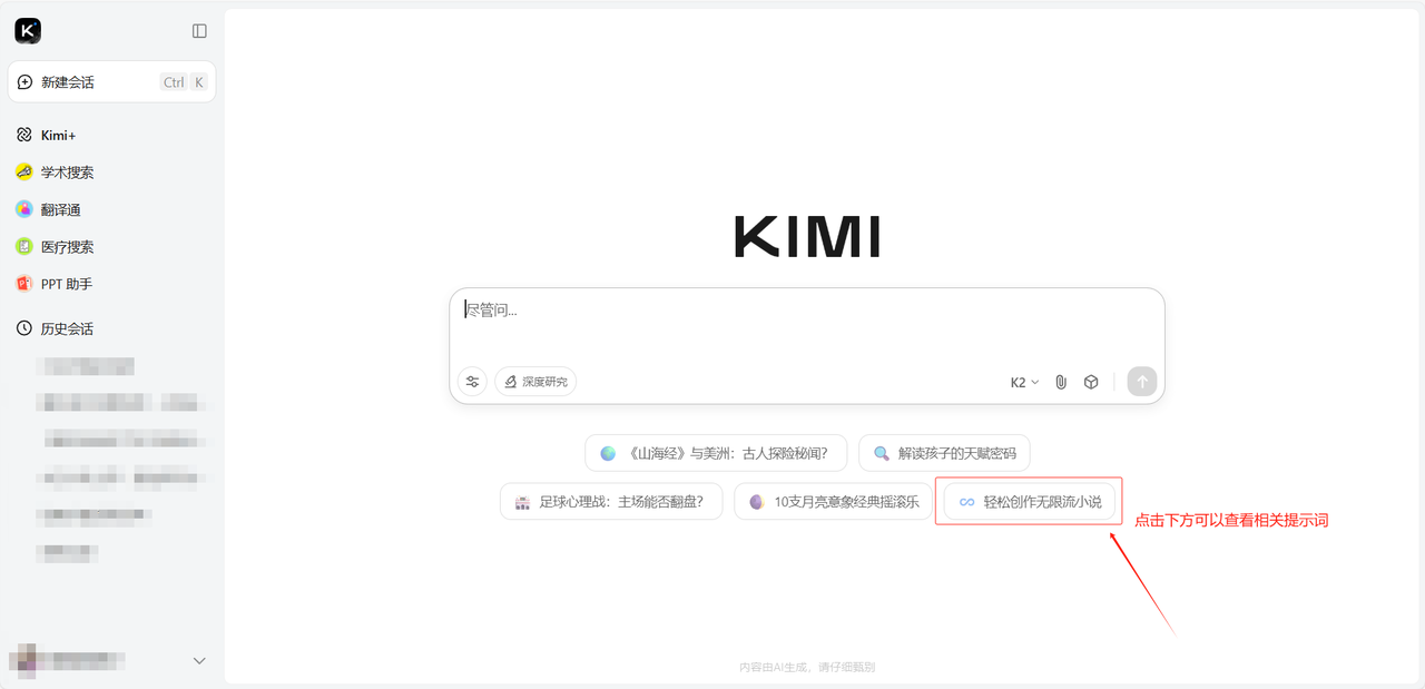 避坑指南: 它的原生文风“公号味”很重,生成的内容往往偏向说明文或营销文。只用它查资料、找小说的素材,别直接复制粘贴进正文,否则读者会以为在看新闻报道。
