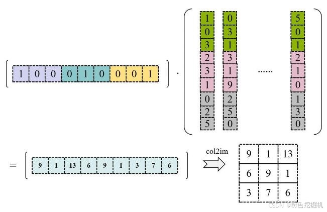 使用上图中转换的矩阵进行GEMM运算,得到的数据再进行col2im就是最终卷积计算的就结果。