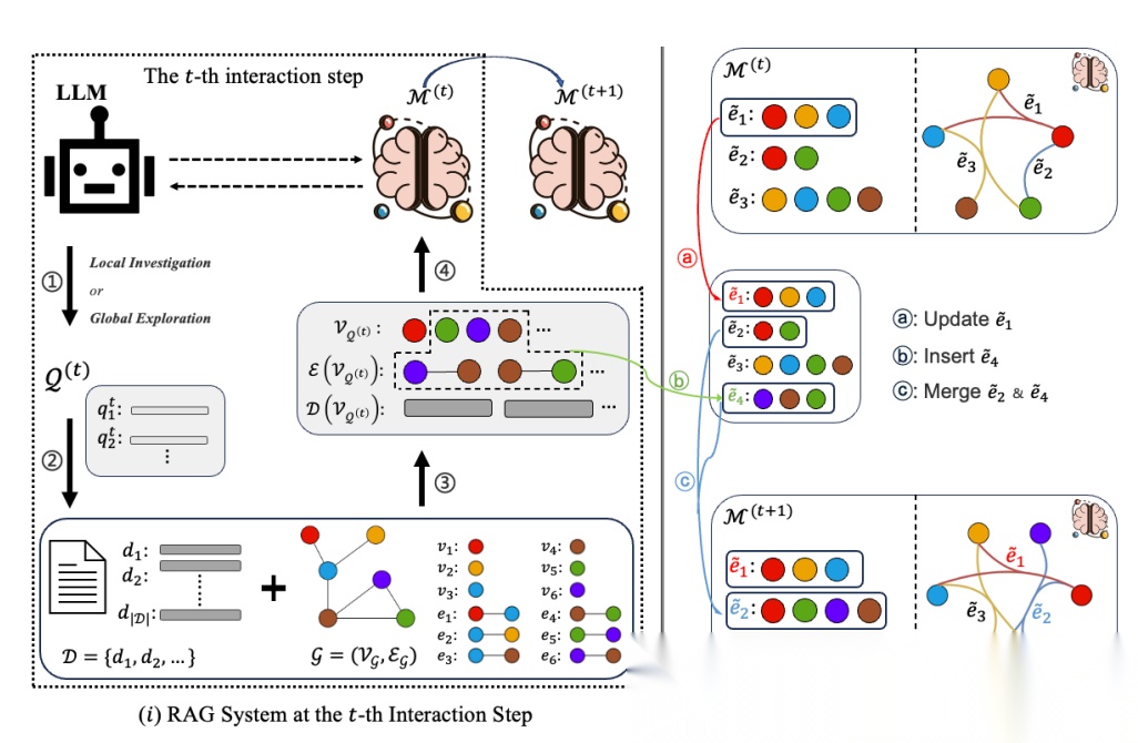 HGMem 是一种增强多步 RAG 的新记忆设计。它将检索到的信息组织成超图(Hypergraph),允许事实随着时间的推移相互连接和组合。这有助于模型构建结构化知识,进行更连贯的推理,并更好地理解复杂的上下文。