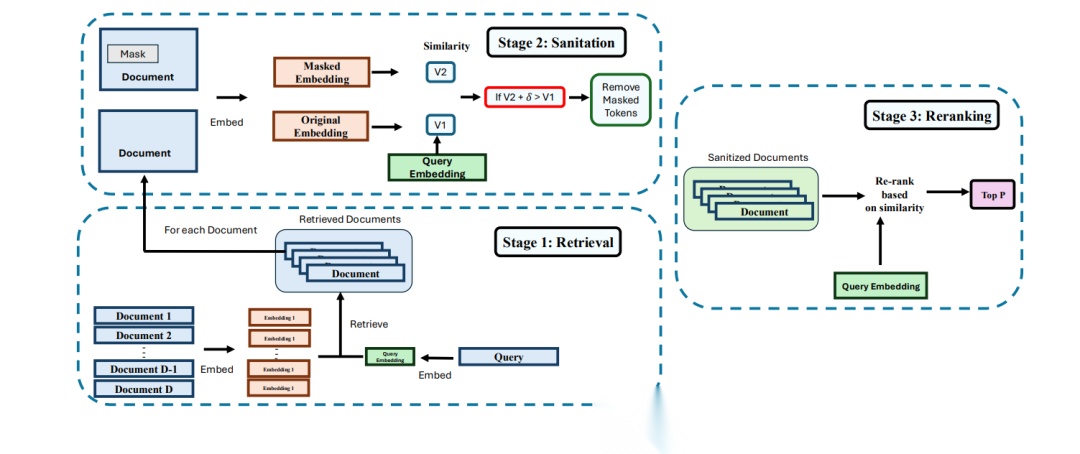 这是针对 RAG 语料库投毒攻击的轻量级防御措施。RAGPart 利用密集检索器如何从分区数据中学习的特性,限制恶意文档的影响;而 RAGMask 则通过掩盖 Token 和检测异常的相似度偏移来标记可疑文档,且无需修改生成模型本身。