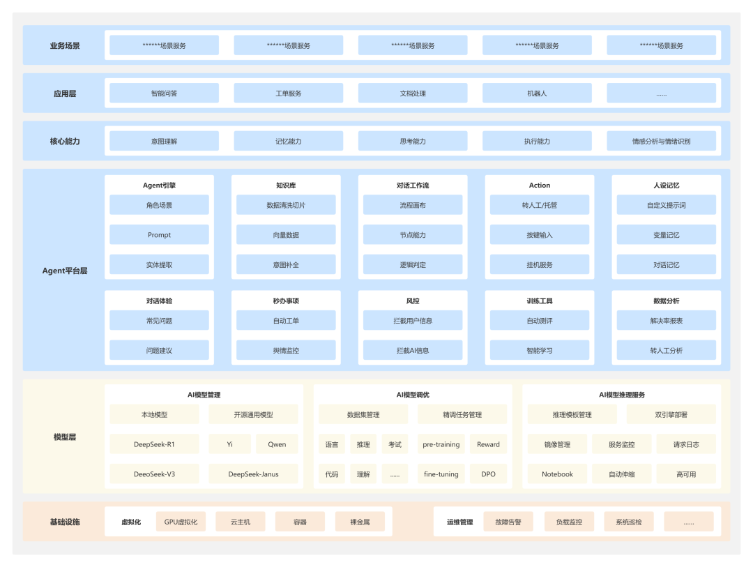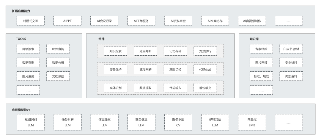 一个标准智能体系统由五层架构、四大核心模块组成,清晰展现其工作逻辑: