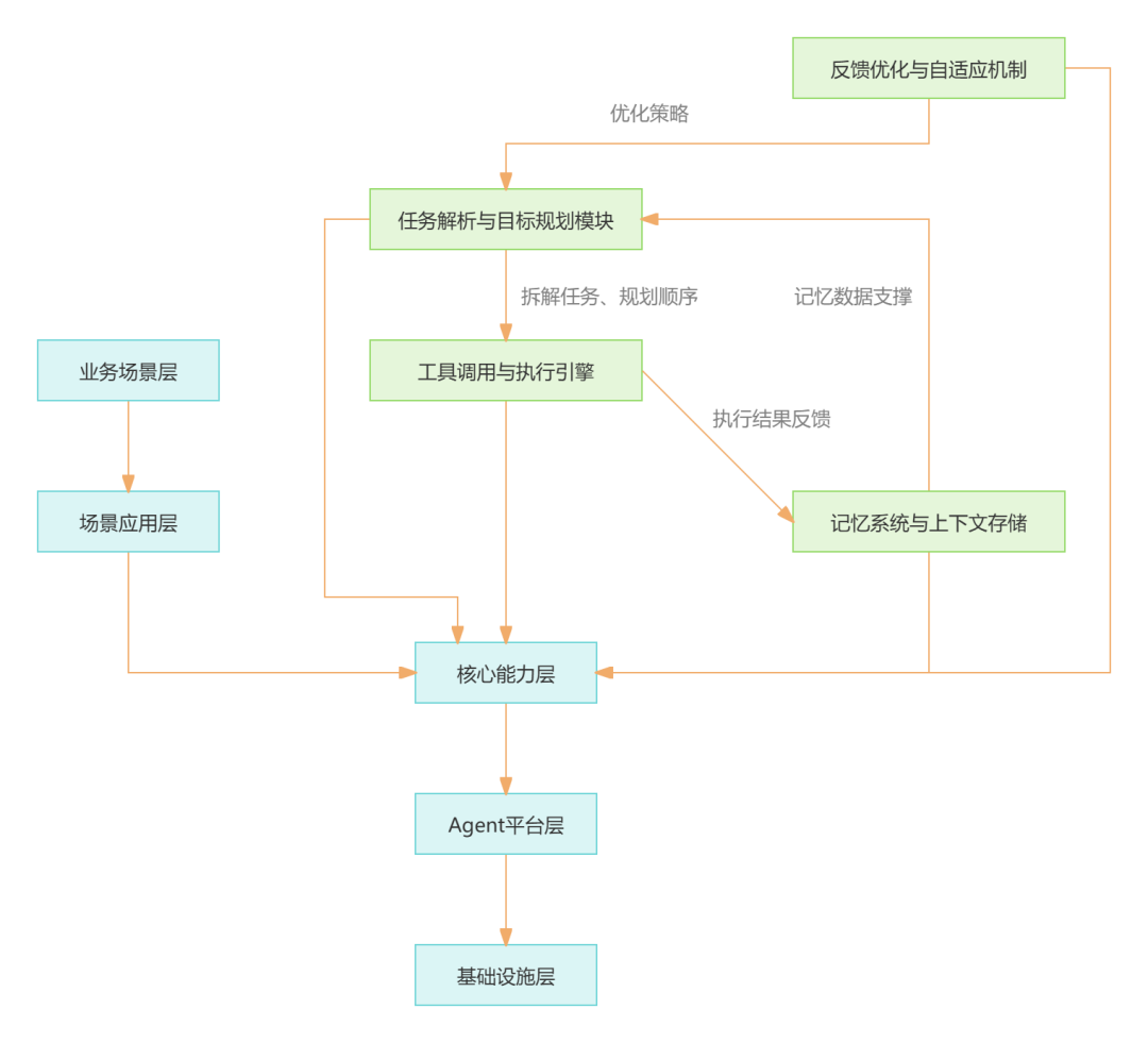 - 反馈机制(Feedback Loop):通过用户打分、目标达成率检测等方式评估结果,反向优化任务规划与执行策略 。