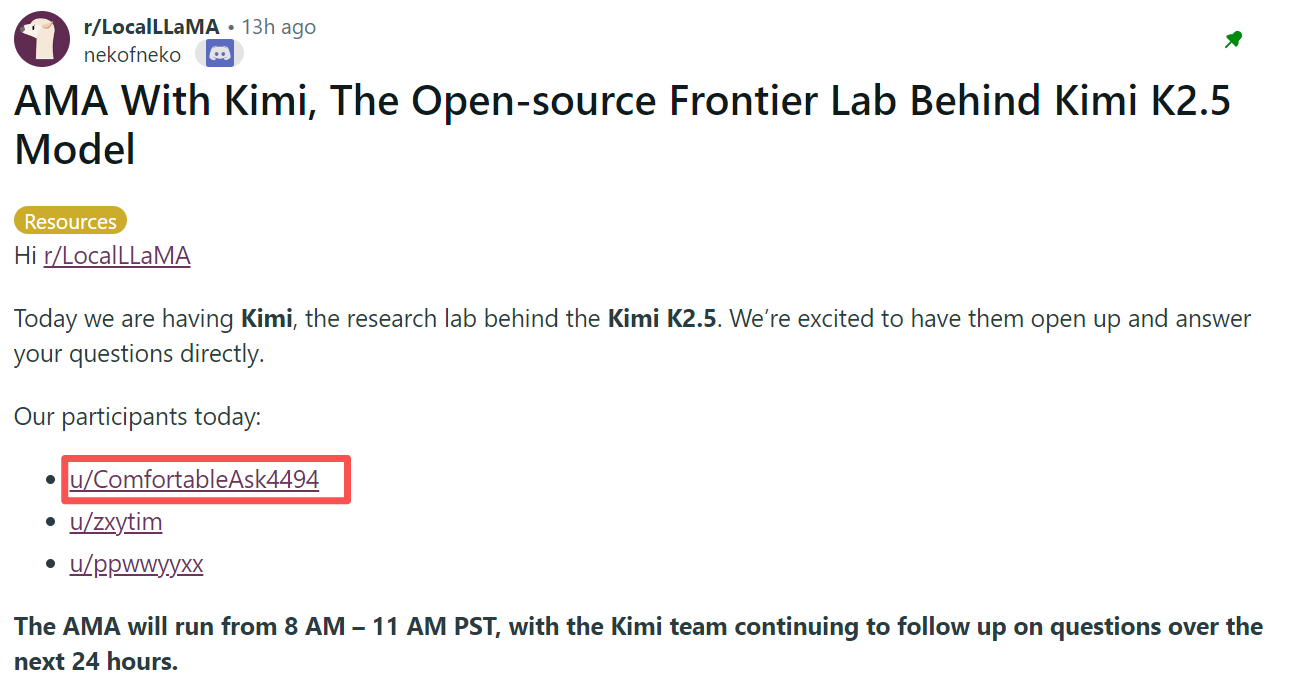 就在今天凌晨,Kimi团队跑到了Reddit最硬核的本地大模型社区 r/LocalLLaMA,开了一场长达几个小时的AMA(Ask Me Anything 有问必答)。