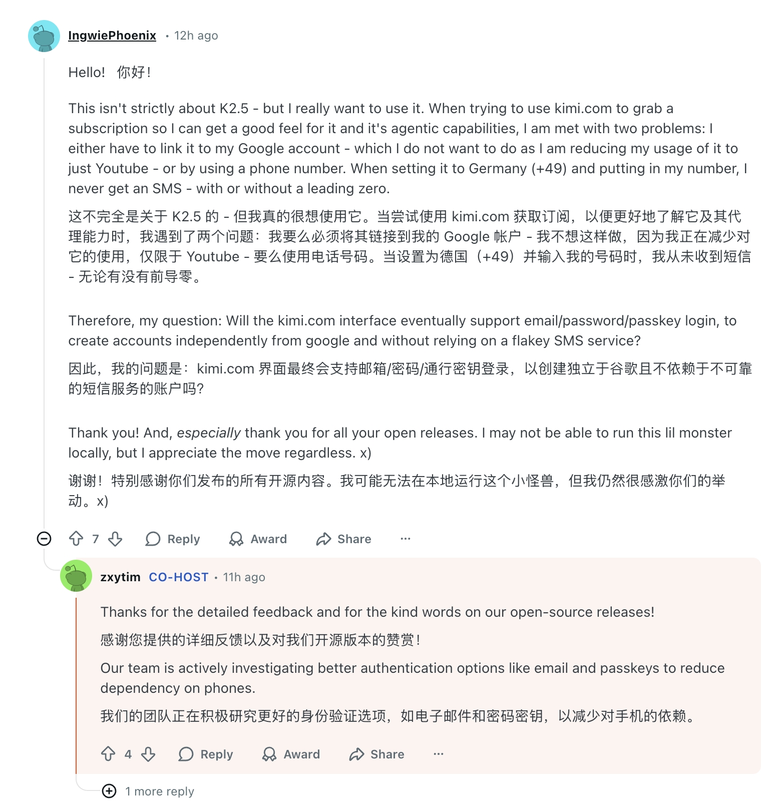 zxytim: “我们的团队正在积极研究更好的身份验证选项,如电子邮件和密码密钥,以减少对手机的依赖。”