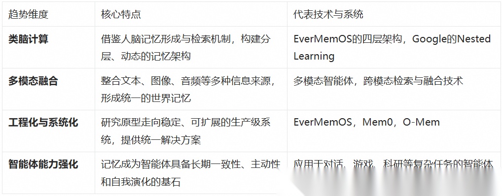 多模态大模型的兴起推动记忆系统向多模态、跨模态方向发展,要求存储具备跨模态关联与毫秒级响应能力。