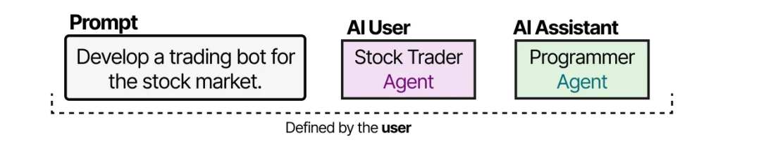 例如,在 CAMEL 中,用户首先提出问题,并定义 AI 用户(AI User)和 AI 助理(AI Assistant)的角色。AI 用户角色代表人类用户,并引导整个过程。