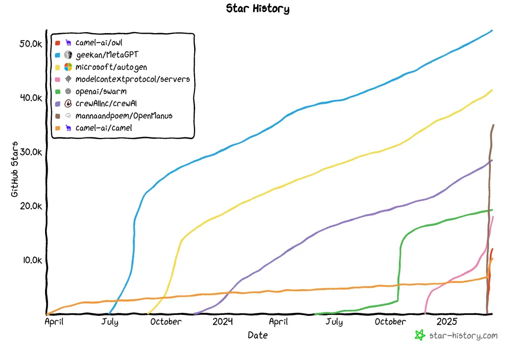 用于实现这些组件的热门框架包括 AutoGen、MetaGPT 和 CAMEL。然而,每个框架处理智能体间通信的方式略有不同。