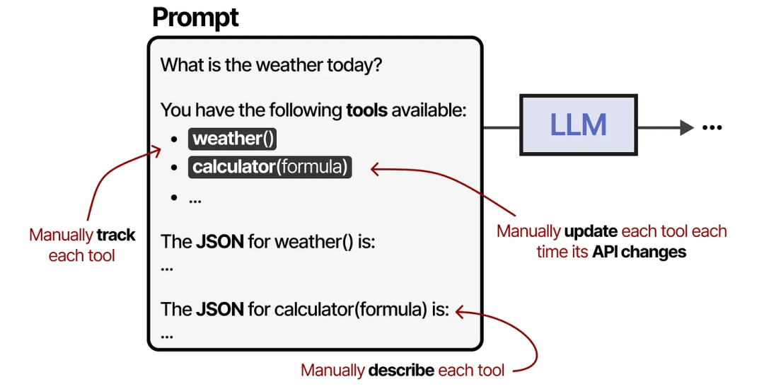 MCP为天气应用和 GitHub 等服务标准化了 API 访问。