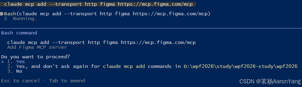经过1分钟,我选择了第二个,以后这个目录添加mcp不要再询问