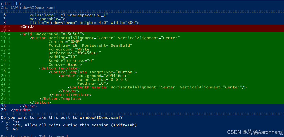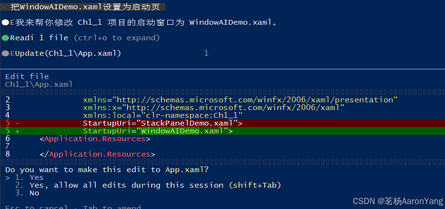 我选择第二个,让他不要再提醒我,如果想局部写代码,你可以告诉它在某某文件,第多少行开始写代码,或者你写注释,让他把那个注释实现成代码,当然这不仅仅写前端的哈