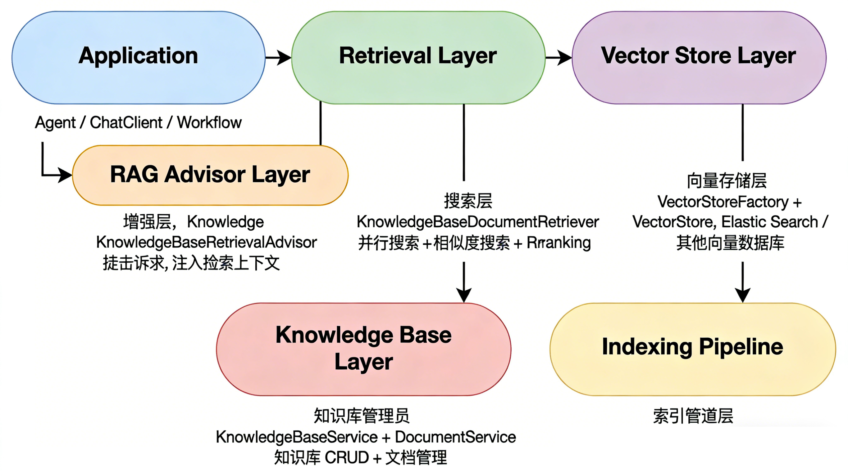 | 增强层 | KnowledgeBaseRetrievalAdvisor | 自动注入检索上下文 |