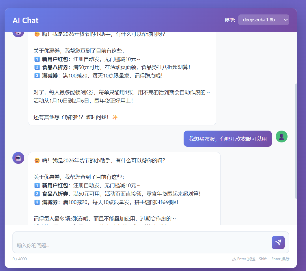 - CouponChatHandler 是基于本地数据的 RAG 聊天处理器
