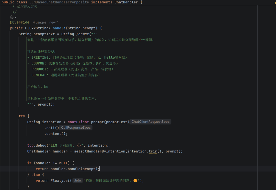 - LLMBasedChatHandlerComposite 基于 LLM的意图识别