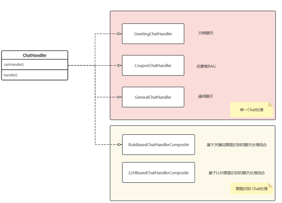 针对不同的业务场景,后期还可以增加 OrderChatHandler 基于订单的聊天处理器,ProductChatHandler 基于产品的聊天处理器。