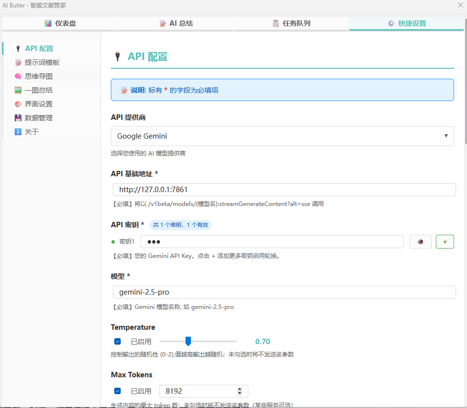 主要用zotero-AI-Butler这个项目1,read me里面有详细的介绍,其中免费的Google Gemini 3 pro API调用使用gcli2api这个项目2。所有的具体步骤参考以下链接,本文做小白的步骤补充。关于2025年12月8日Gemini-2.5-pro报错429的问题情况公告 · steven-jianhao-li/zotero-AI-Butler · Discussion #54