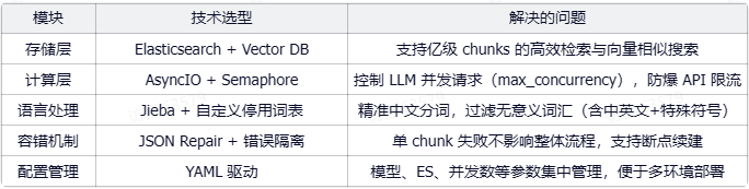 - 关键设计:每个 chunk 维护独立的图谱状态字段,支持增量更新与失败重试。