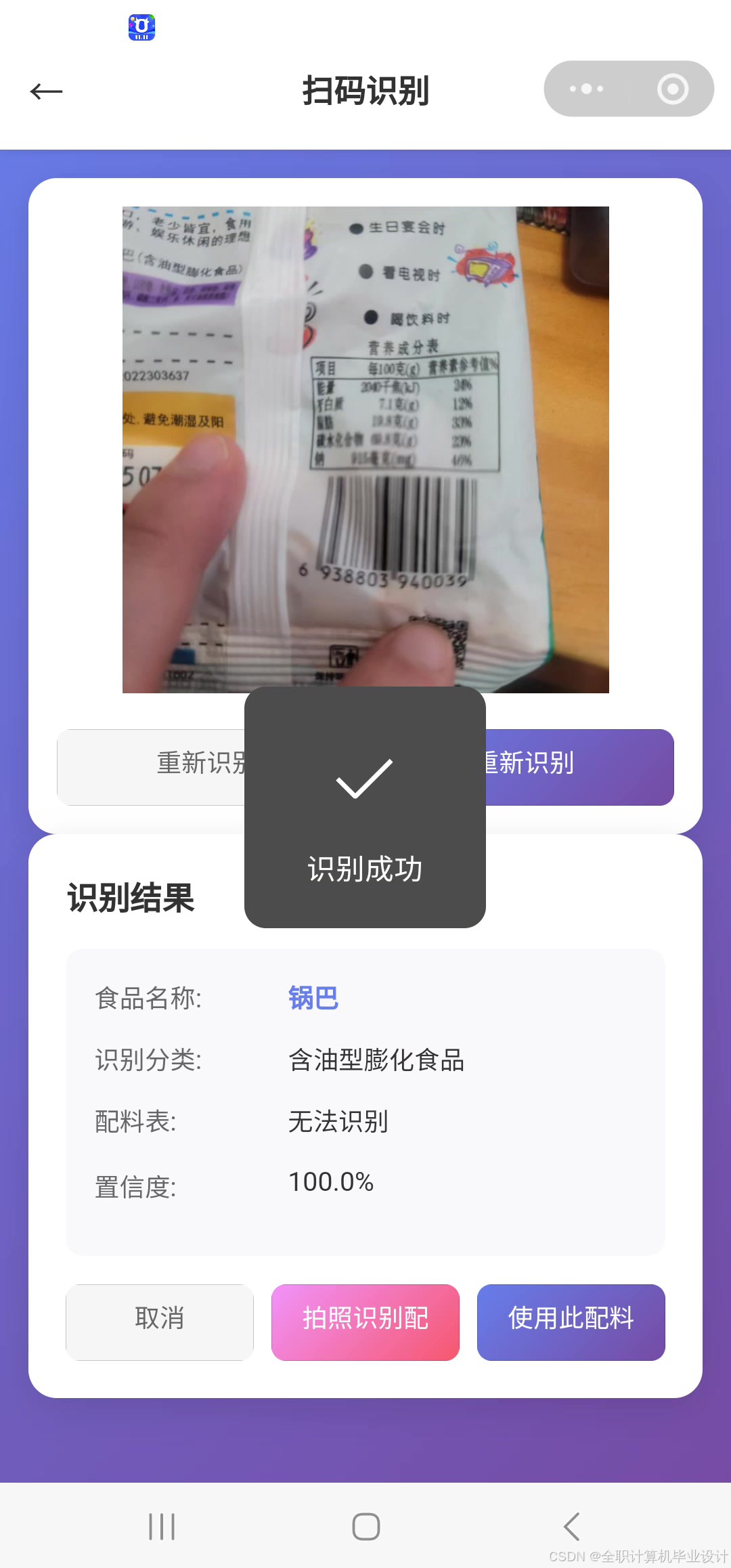 3. 零食识别系统实战总结:微信小程序扫码识别、OCR 配料表解析、AI 图片理解与添加剂安全分析(含管理后台与数据分析)