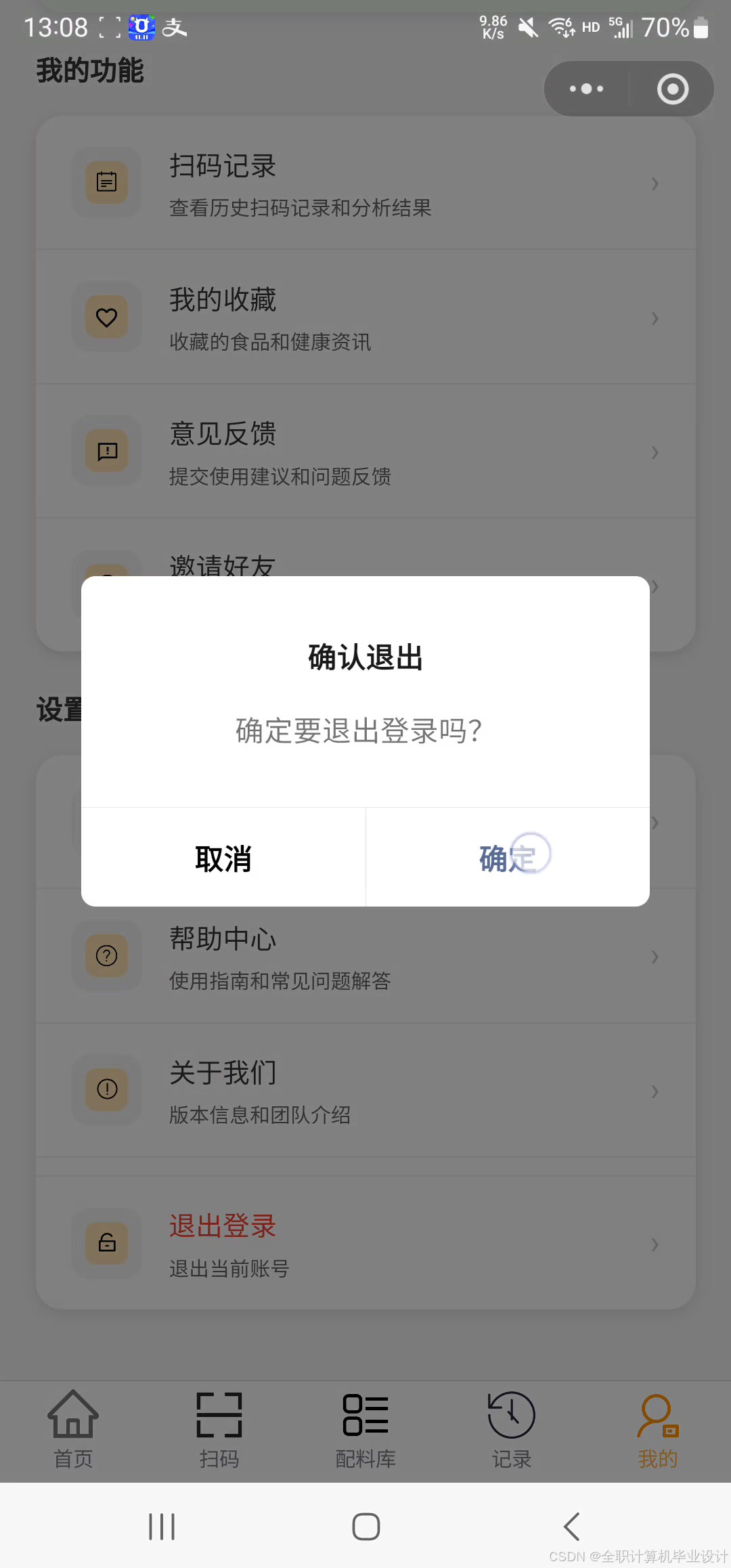 快捷入口:扫码、配料库、历史记录、个人中心等。