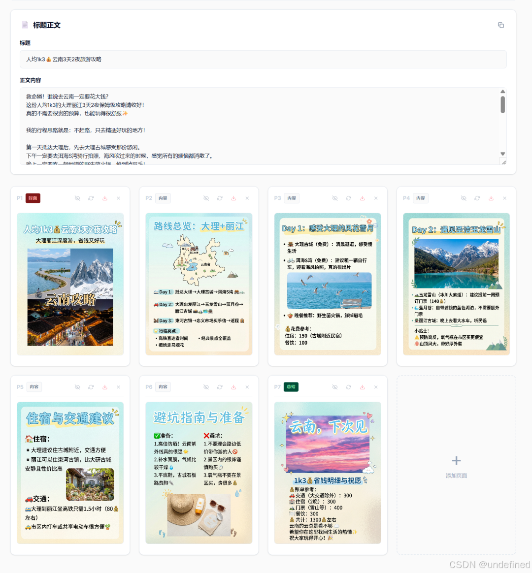 这是我们最近拿【红鸦 AI】测试的实测效果,无论是旅游攻略还是好物种草,出图质量非常扎实: