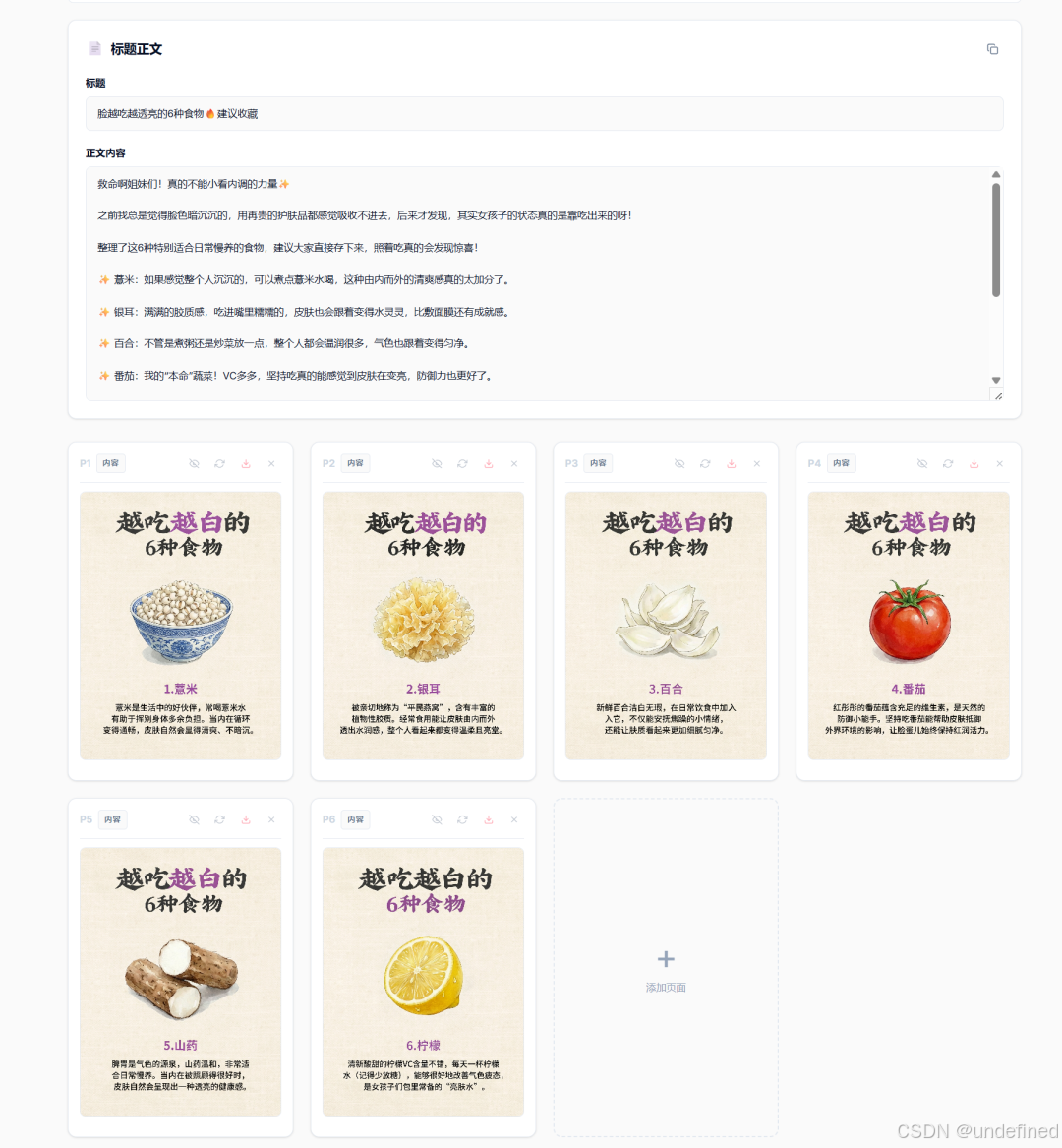 第三步:根据生成的描述,依次批量生成所需的图片素材。 这是最爽的一步。AI 会根据刚才的设定,批量做图文,每一张图的风格都像是出自同一个美工之手,完美契合小红书企业矩阵的审美要求。