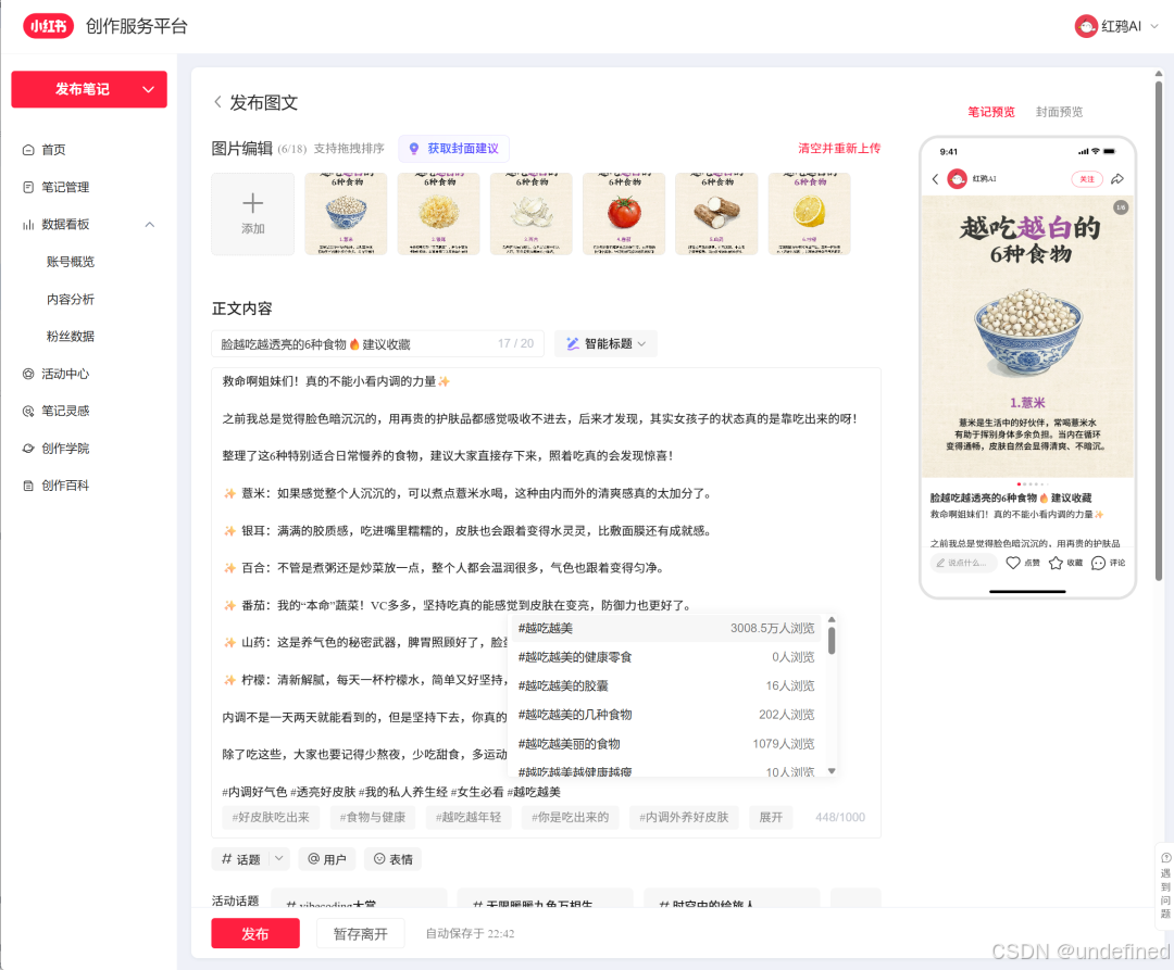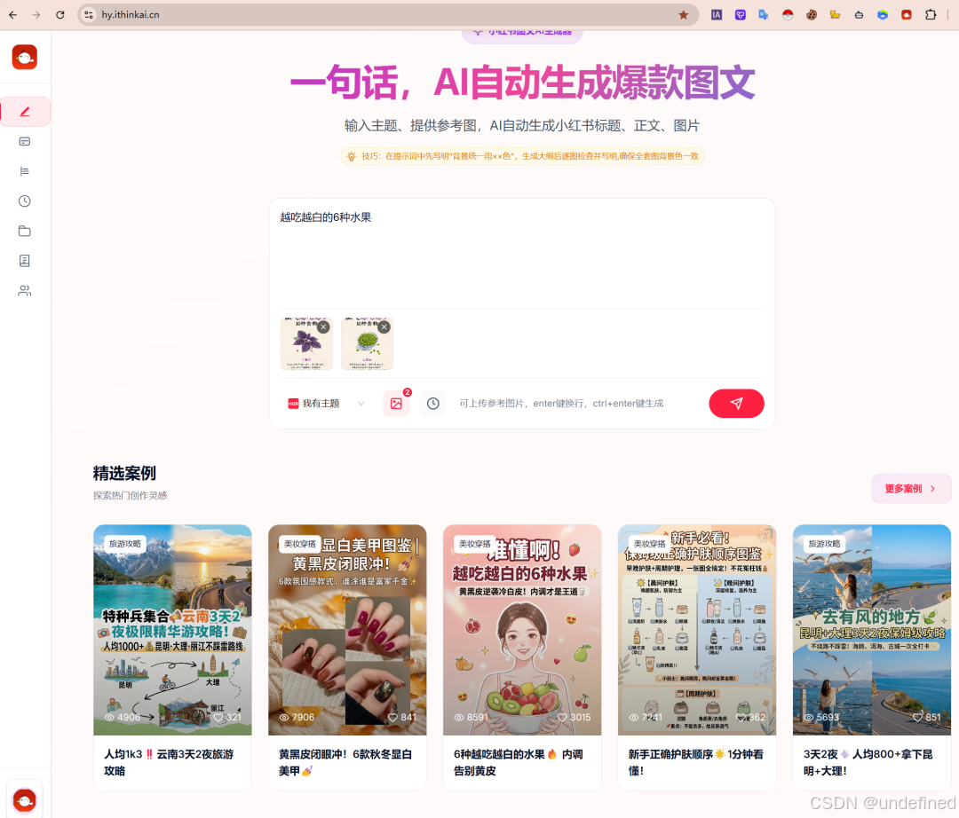 如果你是做【自媒体批量做号】或者【商家图文带货】的,红鸦 AI 绝对是现在的“主力机”。以前做一个小红书笔记,得先构思、再写文案、最后还要修图配封面,半天时间就没了。