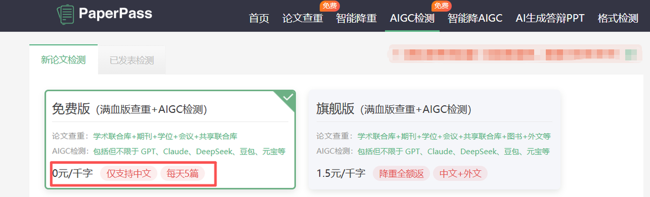 推荐理由:最大的亮点是每天有5篇免费的AIGC检测和查重名额,非常适合在修改过程中反复自测,能省下不少检测费。