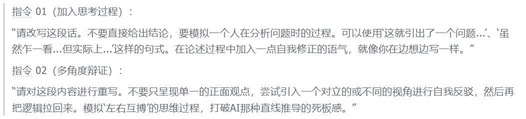 AI说话通常直接给结论,逻辑单一,我们要强制它模拟人类复杂的思维路径。