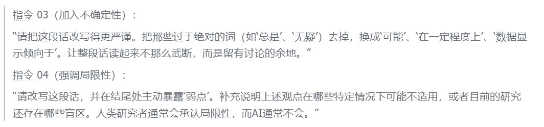 2️⃣ 语气干预类:拒绝“教科书式”绝对