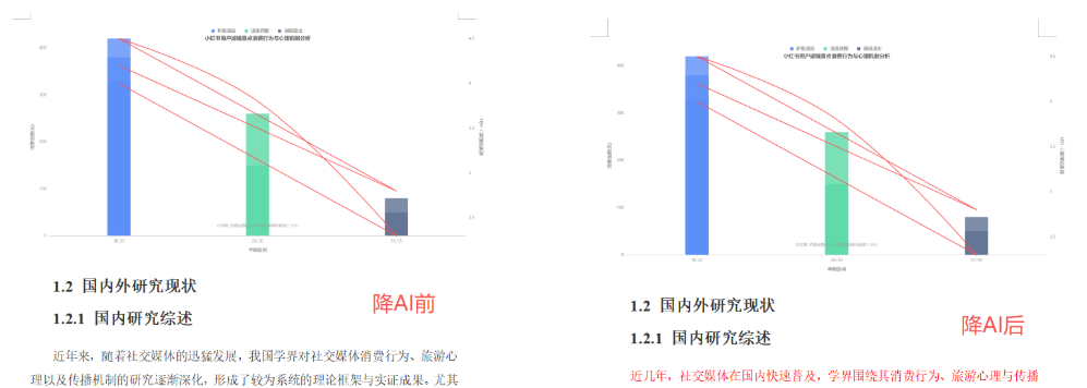 降AI效果:它利用语言模型和强化学习,结合原始语义进行反馈学习,专门自动改写那些疑似度高的片段 。