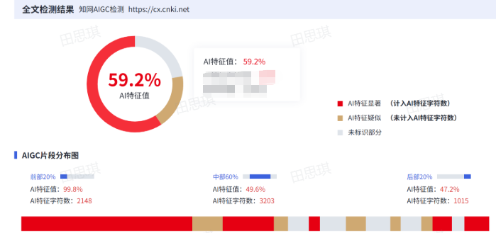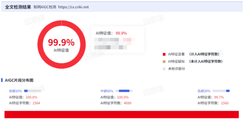 这段话第一眼看过去没啥毛病,但直接扔进知网系统查AIGC,结果非常惨烈: