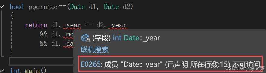 这是因为Date类中的成员变量都是private私有的,不能被类外访问,当然这个问题很好解决,我们甚至有很多解决方法: